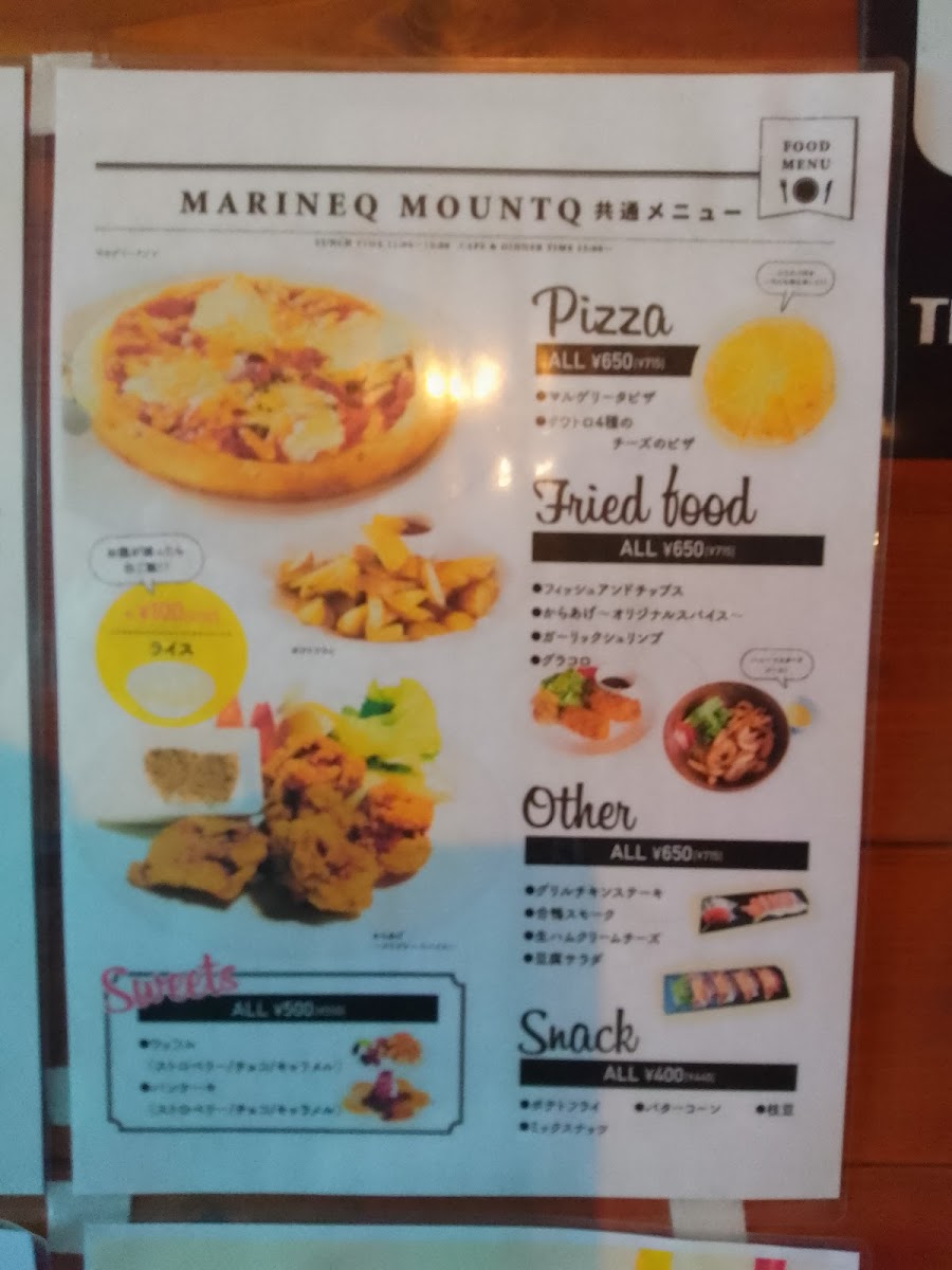 The lunch and dinner options feature enticing plate meals, including choices like Graco-ro, grilled chicken, and hearty hamburgers, each served with rice and soup for just JP¥700. For burger lovers, the Marine Q Burger with soup is also a must-try!